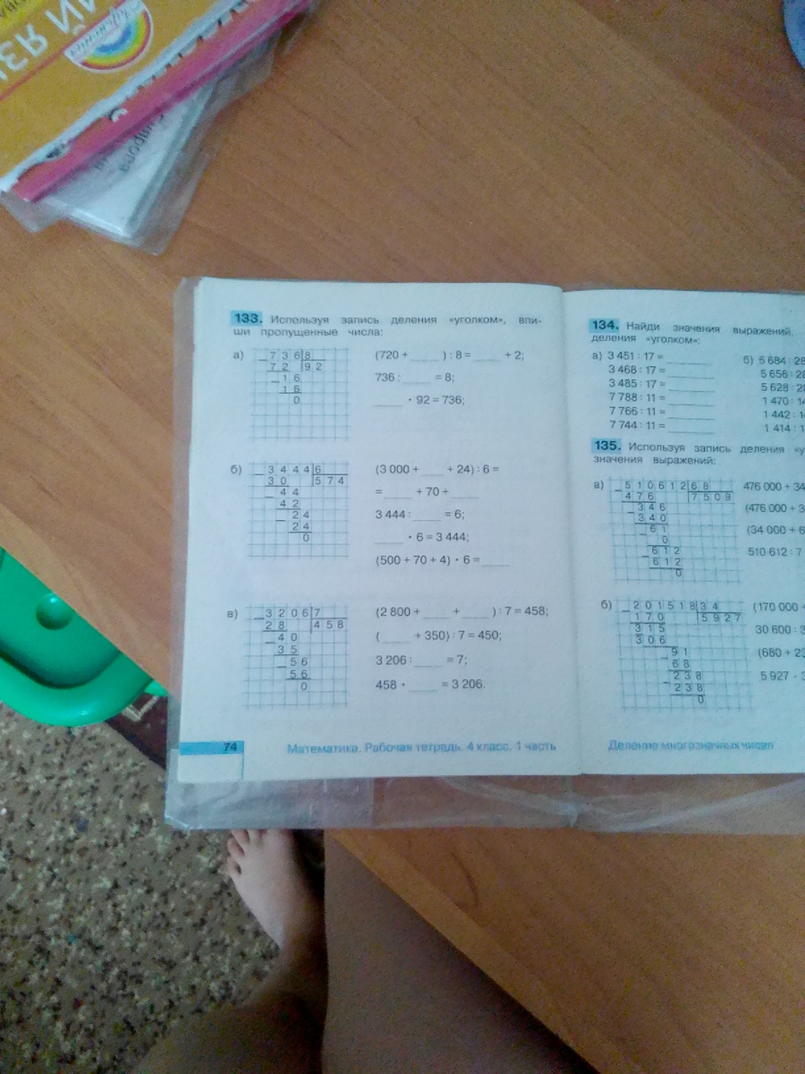 б) (3000 +420+24):6=500+70+4