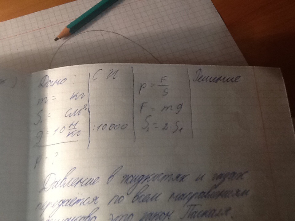 p_s = P/(2*S1) = 450 Н / (2*0,0215 м^2) = 10465,12 Па ~ 10,5 кПа