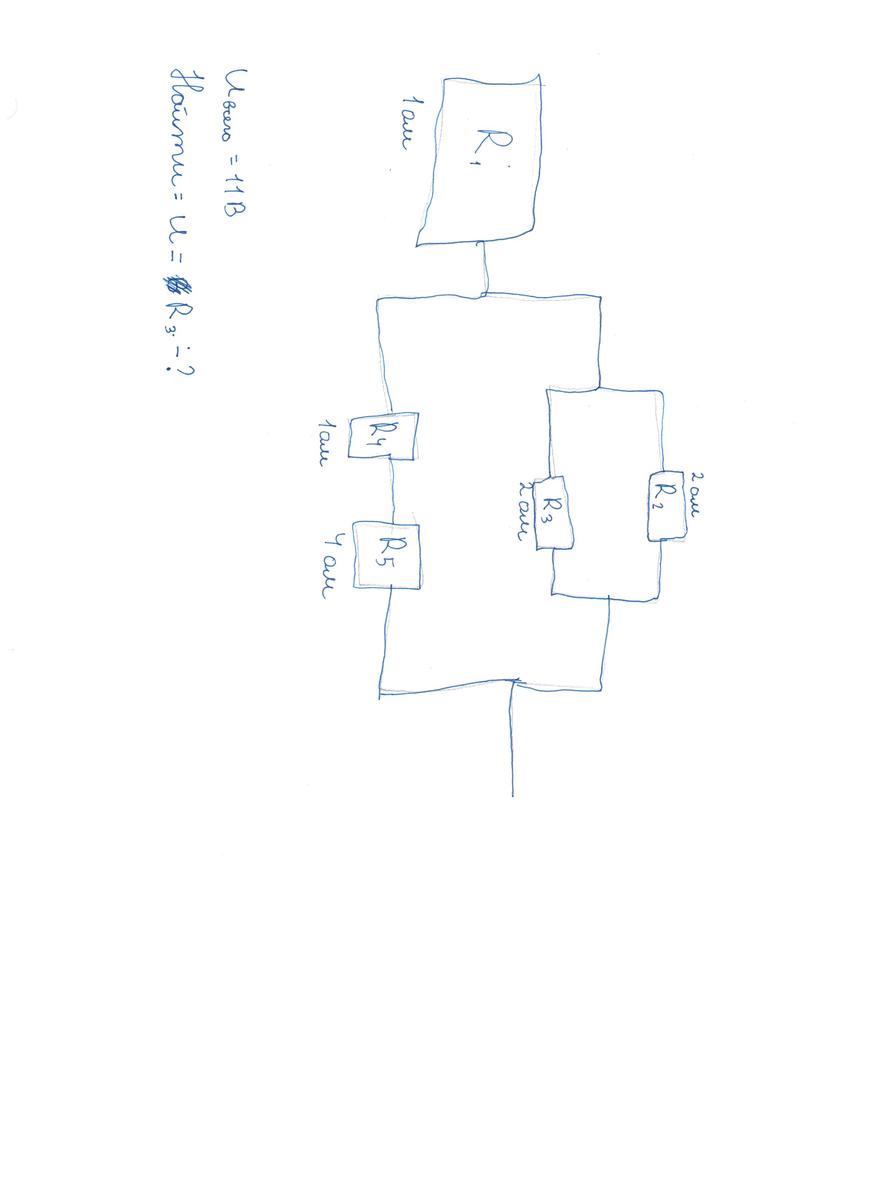 Дано R1=1ом R2=2ом R3=2ом R4=1ом R5=4ом Uвсего=11В Найти U-R3