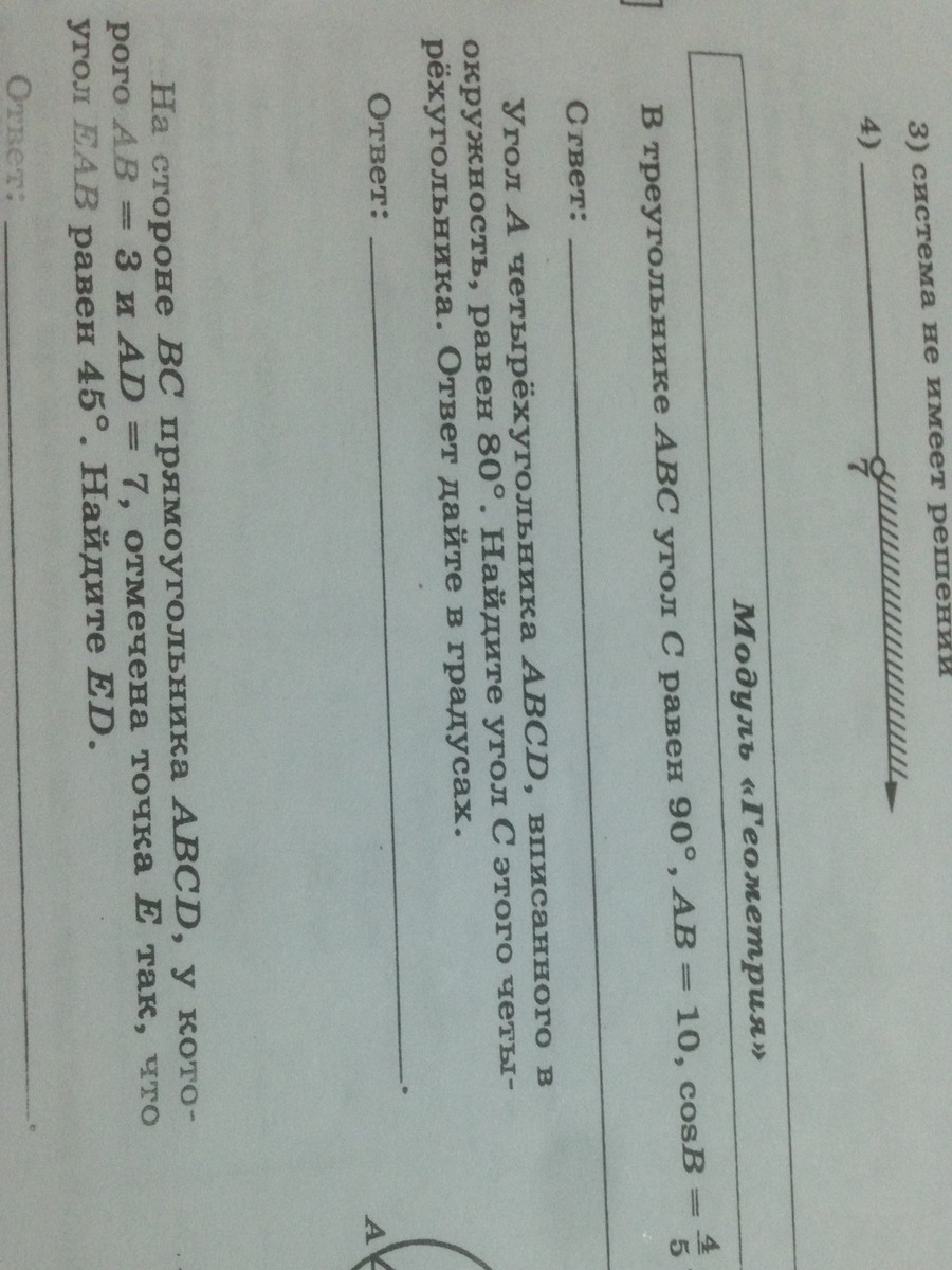 Угол А четырехугольника АВСD, вписанного в окружность, равен 80.