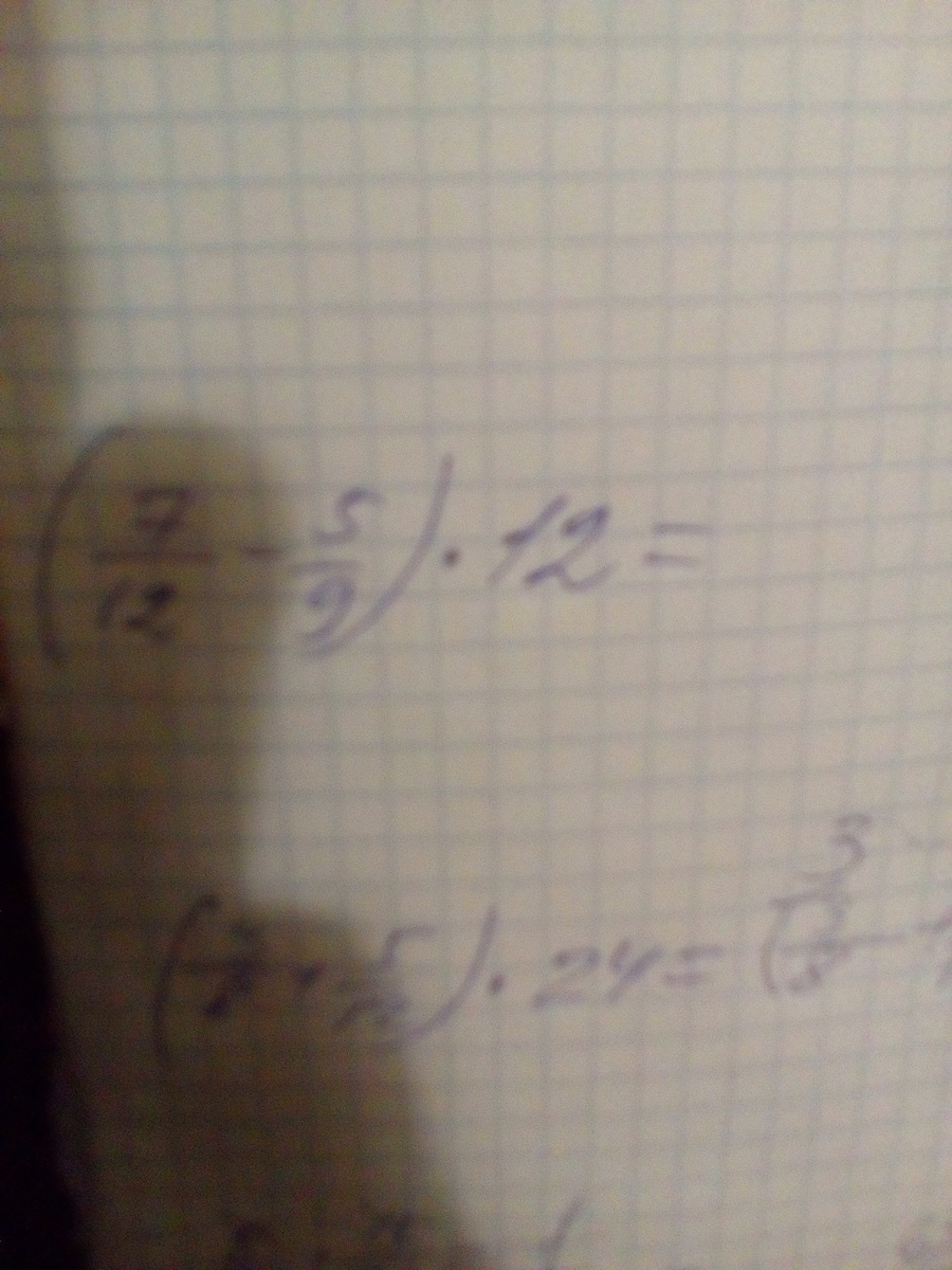 (7/12 - 5/9) *12 = применим переместительное свойство умножения = (7/12)*12 - (5/9)*12 = (7*12)/12 - (5*12)/9 = сокращаем первую дробь на 12, а вторую на 3 = 7 - (5*4)/3 = представим 7 целых в виде дроби со знаменателем 3 = 21/3 - 20/3 = вычтем = (21-20)/3 = 1/3