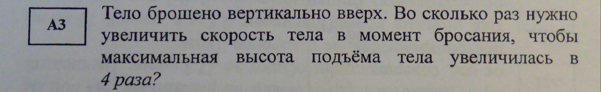 если увеличить скорость в 2 раза то высота увеличится в 4 раза