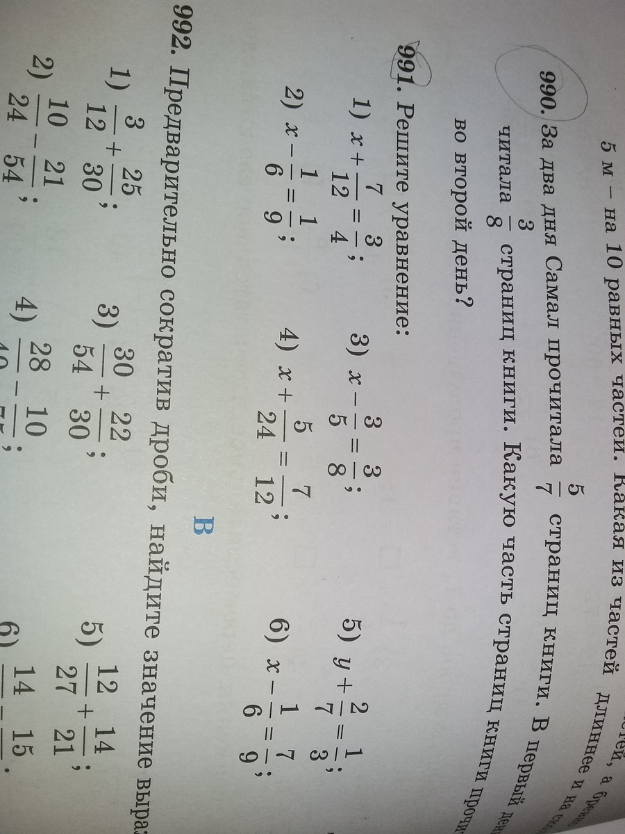 Задача: 5/7-3/8=40/56-21/56=19/56 часть прочитал во второй день
