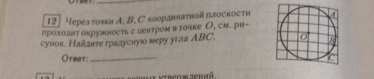 Радиус ОА делит 90° на два, т.е. ∠АОВ=45°. Так как ∠АОВ-централный, то дуга АВ=45°. Радиус ОС так же делит 90° на два, т.е. ∠МОС=45°. ∠АОС=90°, значит дуга АNC=360-90=270°. ∠АВС является вписанным углом, по свойству вписанного угла, ∠АВС=1/2 дуги, на которую он опирается. Отсюда ∠АВС=135°.
