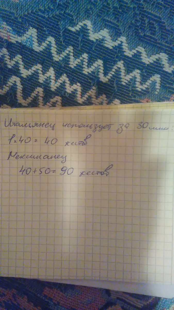 за 30 минут финн использует 1 жест, итальянец- в 40 раз больше, а мексиканец ещё на 50 жестов больше. сколько жестов использует мексиканец?