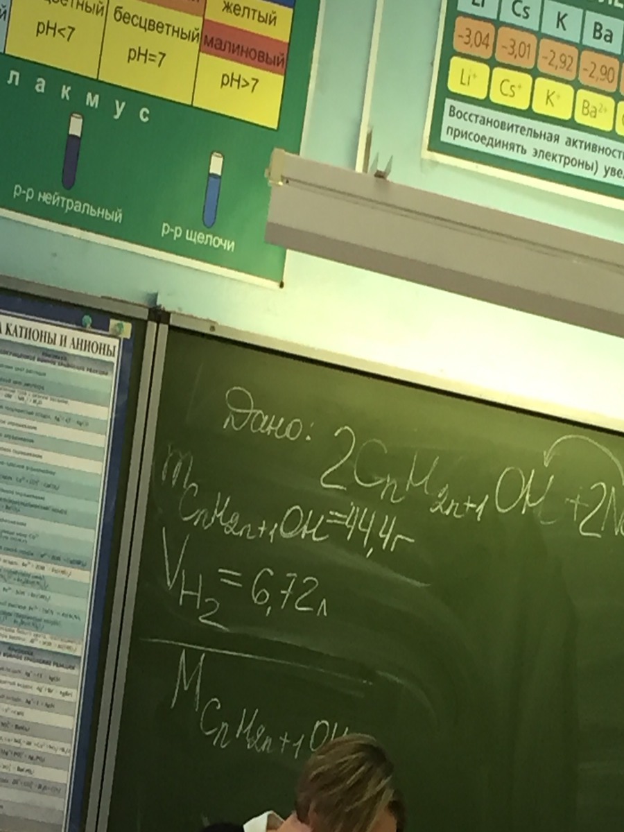 Определим количество вещества водорода n(H2)=6.72/22,4=0,3моль ,согласно уравнению реакции вступило в реакцию спирта в раза больше , т.е. 0,6 моля и весят они 44,4 грамма и тогда М(СnH2n+1OH)=44,4/0,6=74