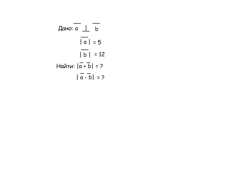 так як вектори перпендикулярні, то третій вектор, що буде сумою та різницею заданих векторів, буде гіпотенузою прямокутного трикутника.