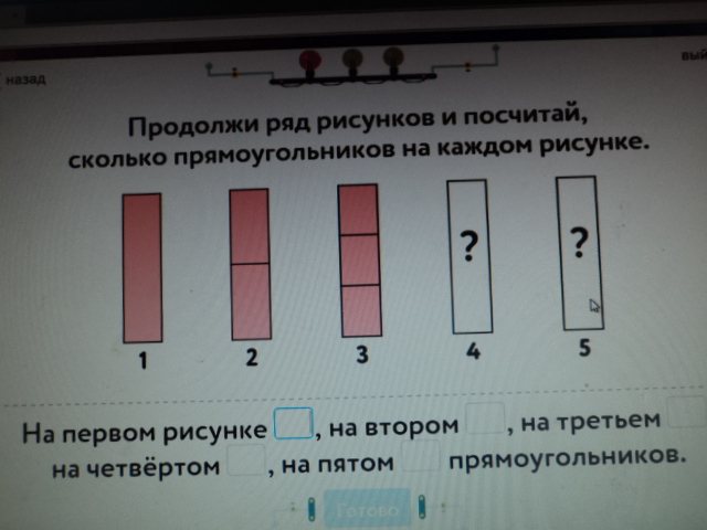 2.Продолжи ряд ресунков и посчитай,сколько прямоугольников на каждом ресунке?