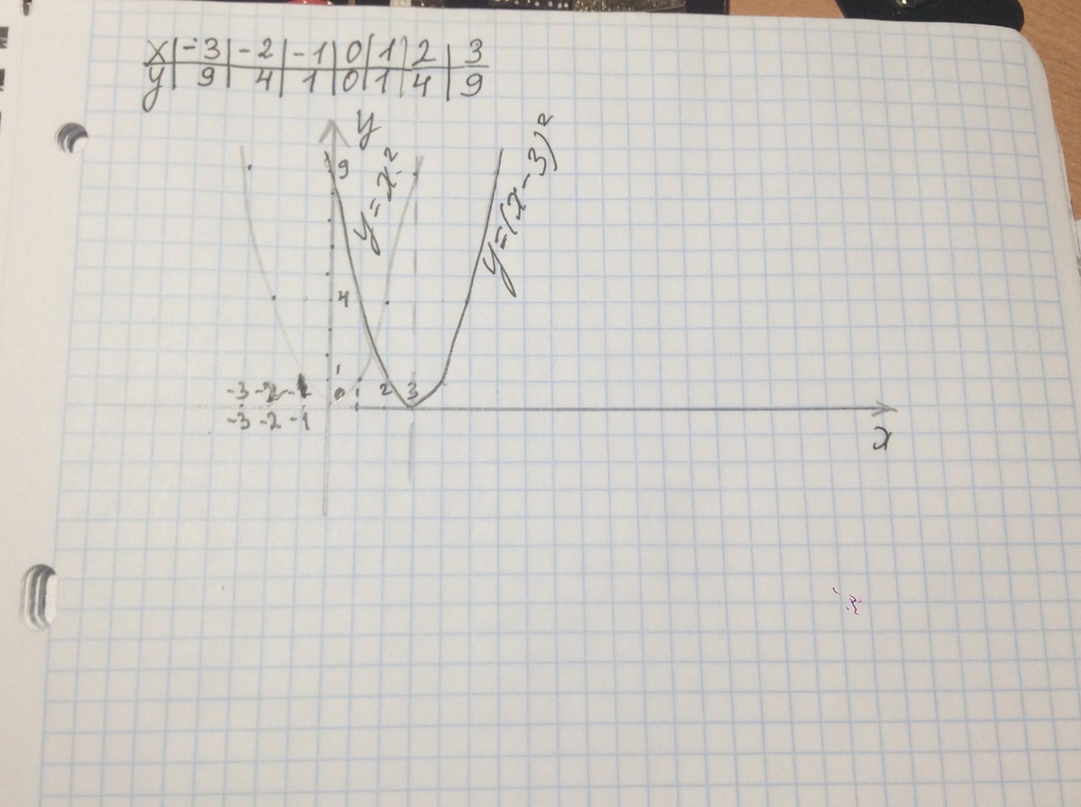 Составьте таблицу значений и постройте параболу по формуле y=(x-3)²
