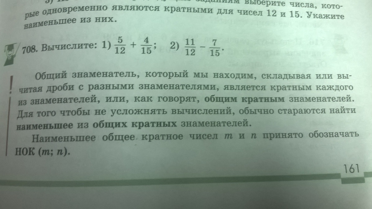 пример первый. общие наименьшое кратное 5 и 4. т.к. 12*5=60, 15*4=60, под общей чертой пишеться 60, значит наверху будет 25+16, а внизу 60 и того 41 наверху, внизу 60