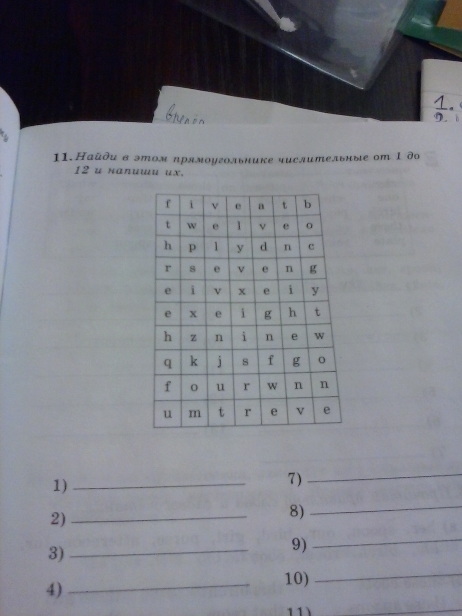 1-One,2-Two,3-Three,4-Four,5-Fife,6-Six,7-Seven,8-Eight,9-Nine,10-Ten,11-Eleven,12-Twelve.
