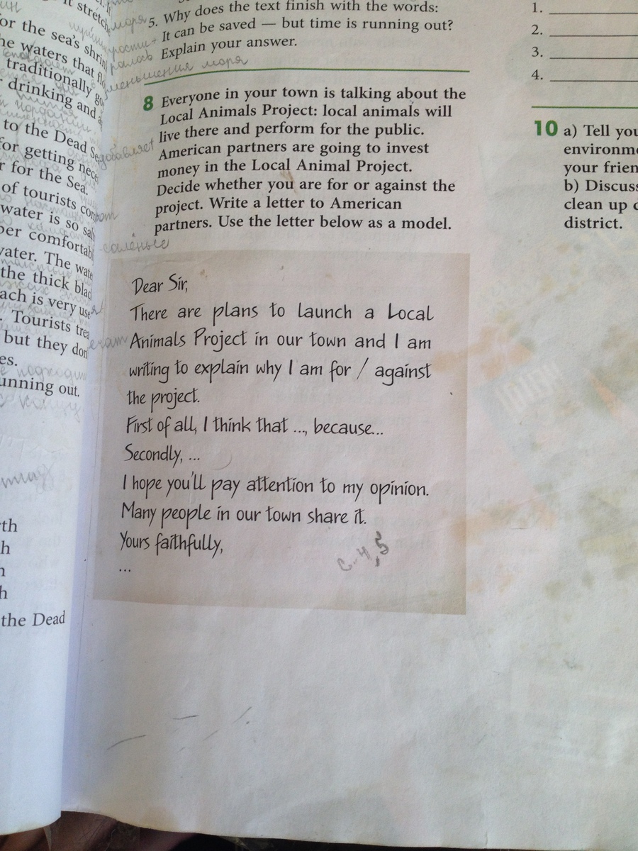 I think the plans to launch a local Animals Project in our town are just wonderfull! I am writing to explain why I am for the project.