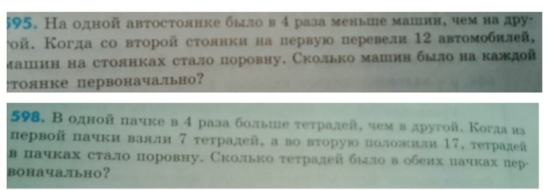 x - тетр. в одной пачке, тогда 4x - в другой