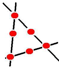 Расположи 6 точек так, чтобы можно было провести 3 прямых,на каждой из которых находились бы 3 точки.