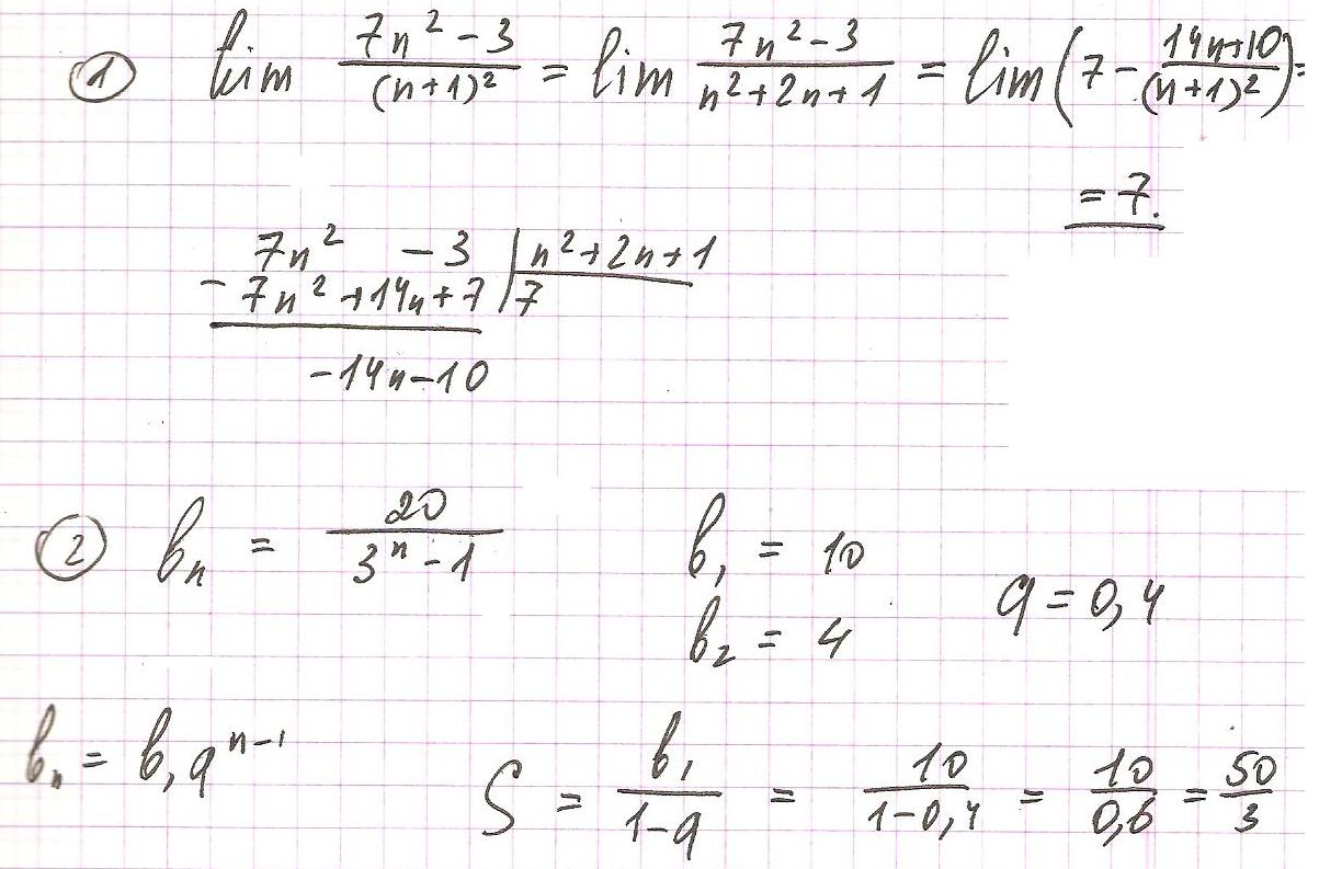 1) Вычислите lim 7n^2 - 3 / (n+1)^2