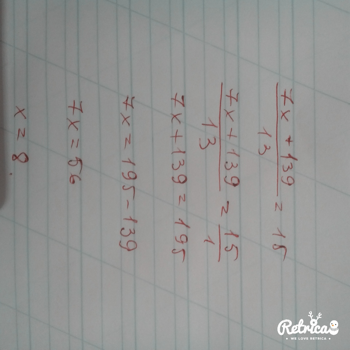 7x+139=195