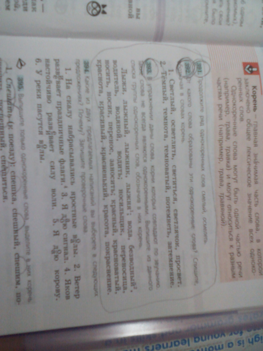 392:1)везде корень свет.2)везде корень темно (или же темн)
