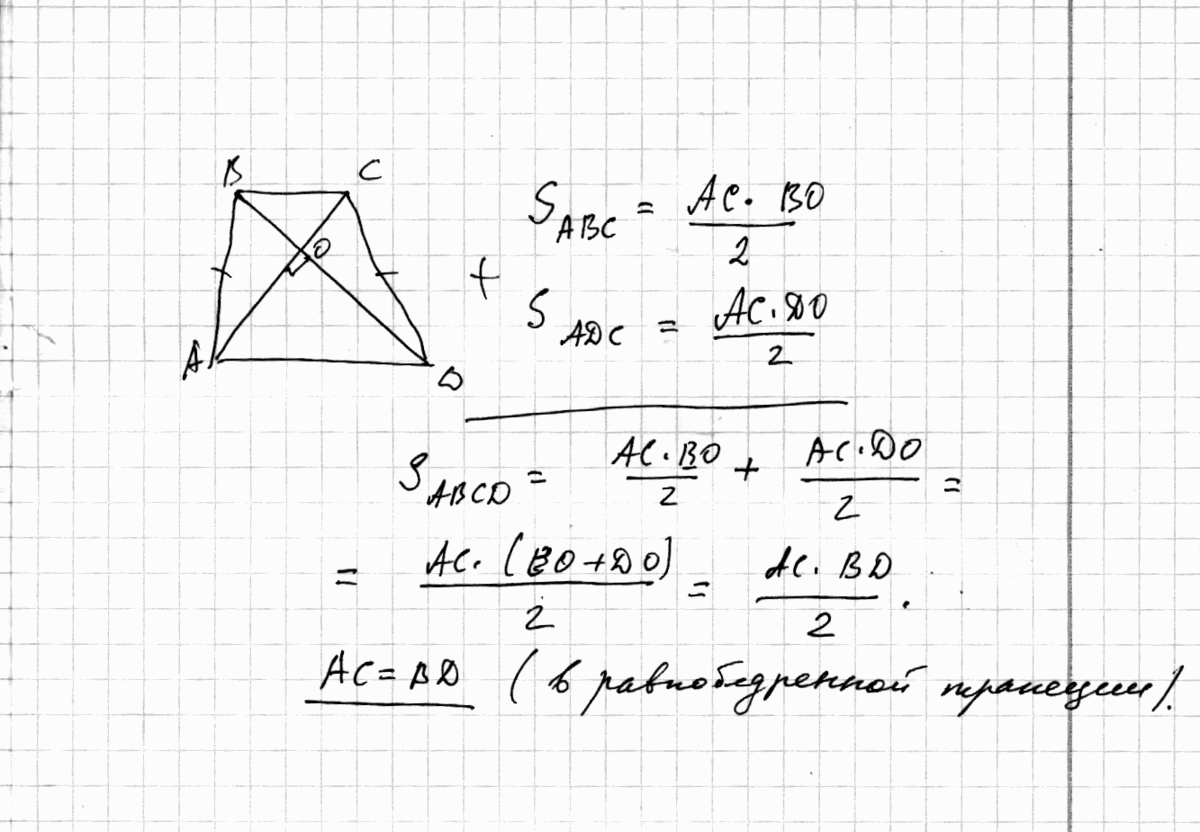диагонали равнобедренной трапеции абсд перпендикулярны найдите площадь трапеции если диагональ ас=6 см