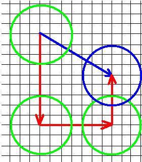 Нарисуй круг радиусом 3 клетки. Перенеси его на 9 клеточек вниз, потом на 7 клеточек вправо, а потом на 5 клеточек вверх. Каким одним преобразованием можно заменить все эти преоброзования?