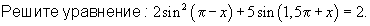 1) 2 sin^2 (п-х) + 5 sin(1.5п+x) = 2