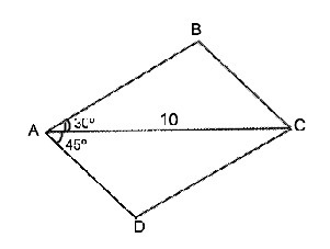 ∆ АDC=∆АВС=> S(ABCD)=2•50:(√3+1)=36,6025…≈36,6