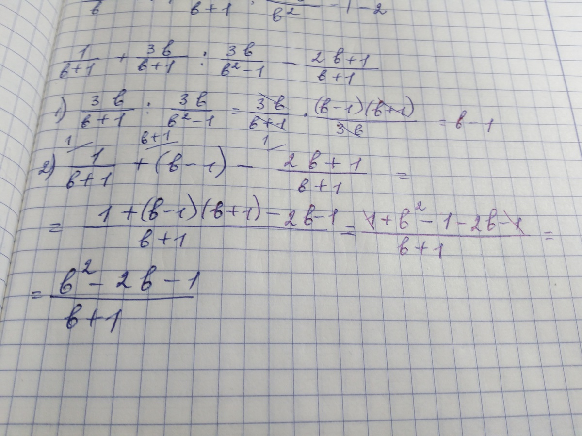 1/b+1 + 3b/(b+1) : 3b/b^2-1 - 2b+1 /b+1