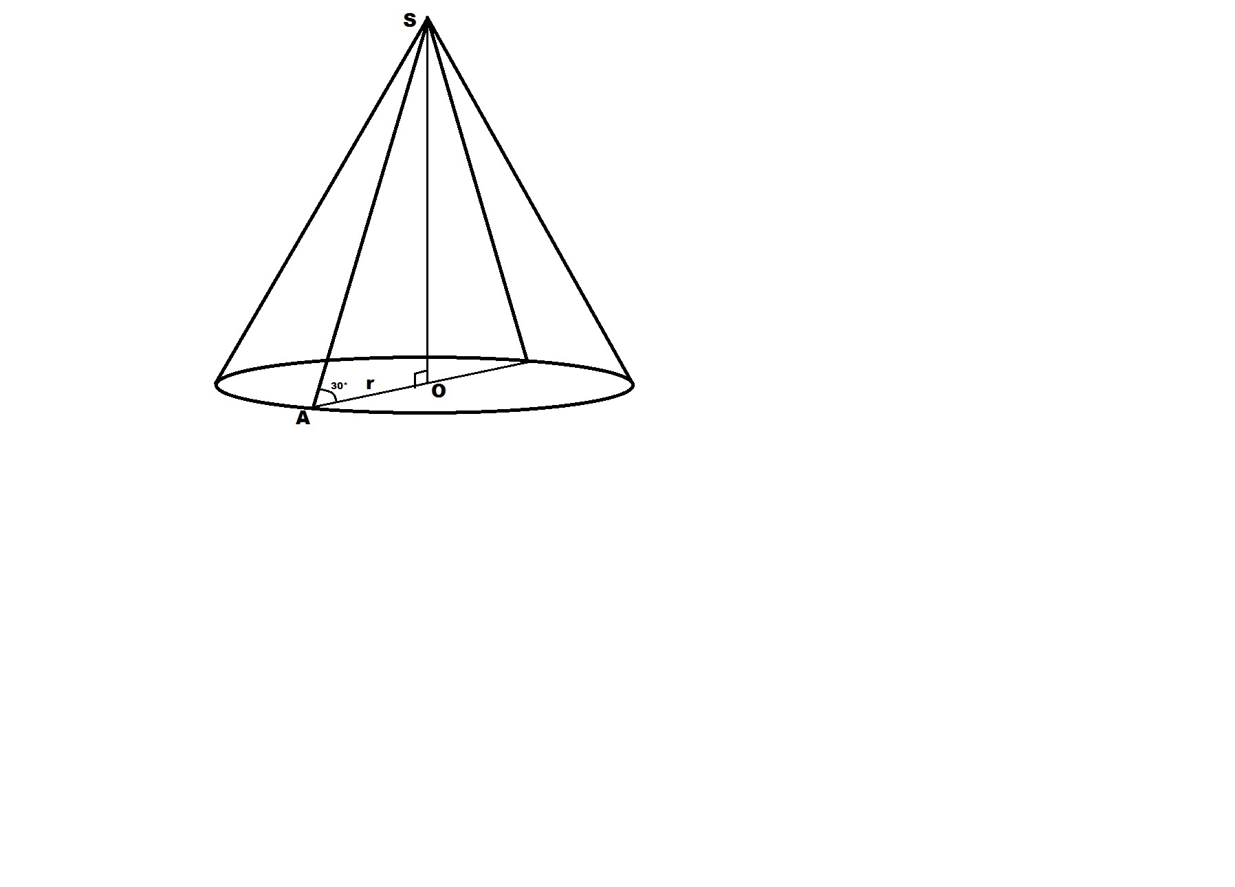 рассматриваем треугольник SAO-прямоугольный, SA - 20 см , угSAО=30*, ОА=ОВ=r