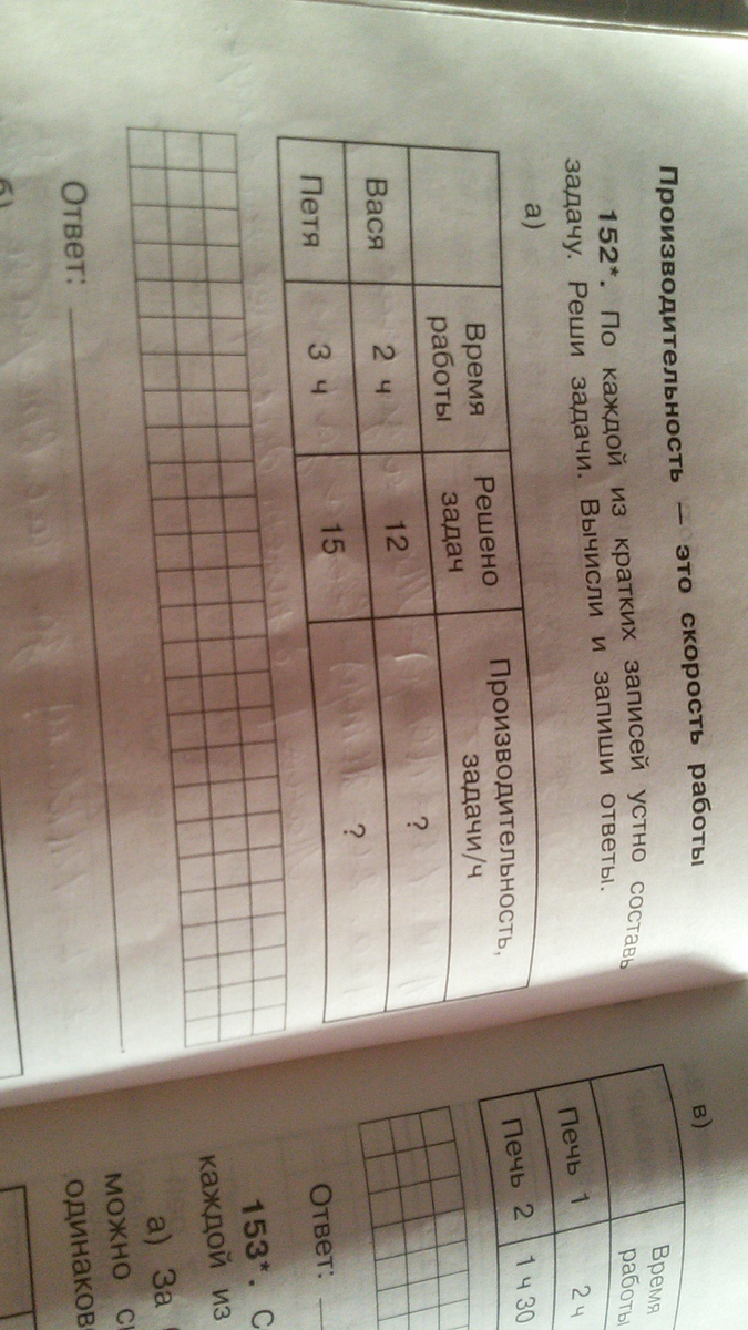 Смотри,тут нужно 12:2=6 задач/час. Это в-первом случае, а во-втором случае 15:3=5 задач/час