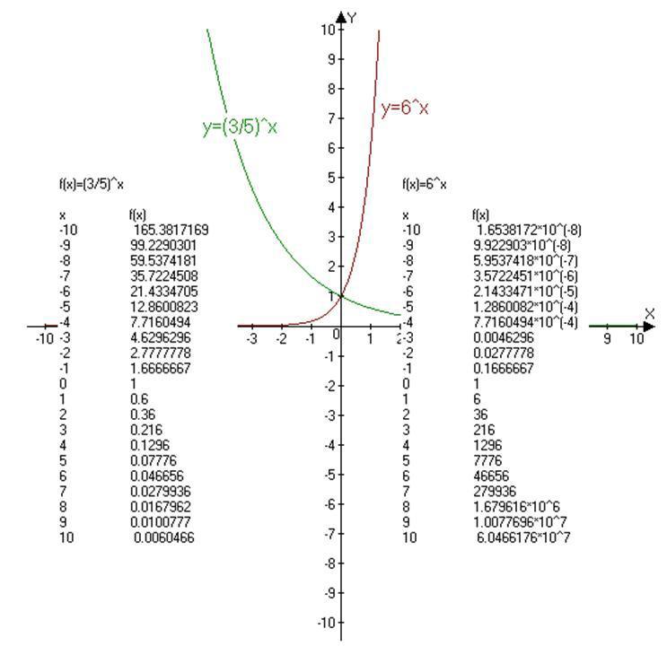 Здесь все настолько просто. Показательная функция, при основании меньше единицы-убывающая, при основании больше единицы-возрастающая. Оба графика обязательно проходят через точку у=1. Ось Ох есть горизонтальной асимптотой.