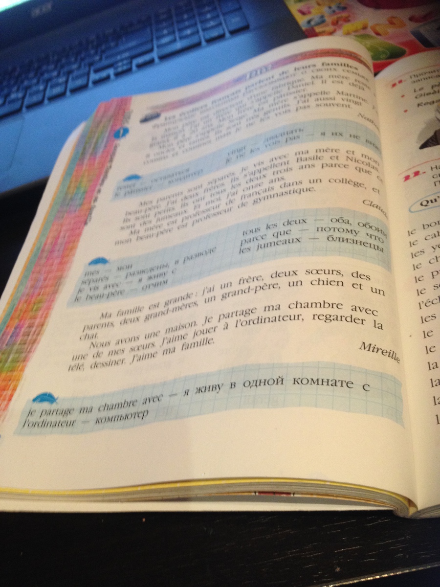 2. Мои родители разведены. Я живу с мамой и с отчимым. У меня два брата. Их зовут Базиль и Николя. Они маленькие. Им обоим по три года потому что они близнецы. А мне 11 лет.