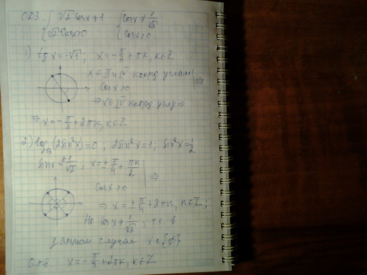 Применены табличные значения и знаки тригонометрических функций, свойства логарифма