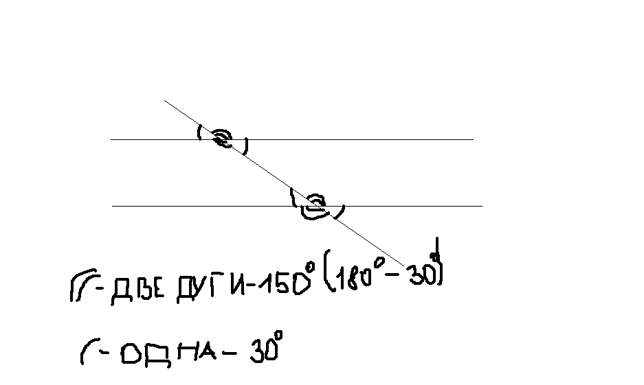 Соответственные углы =30,смежные с ними=150,а дальше вертикальные и прочее))