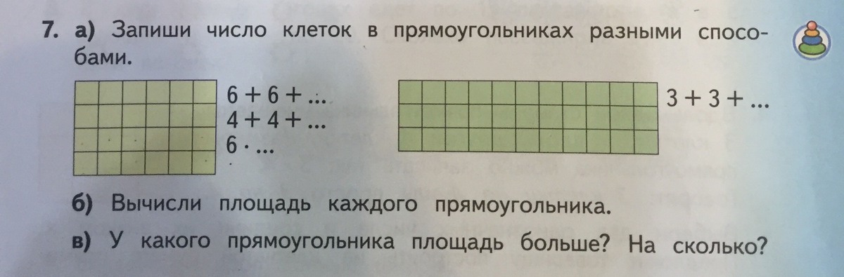 У второго прямоугольника площадь больше на 9 клеток