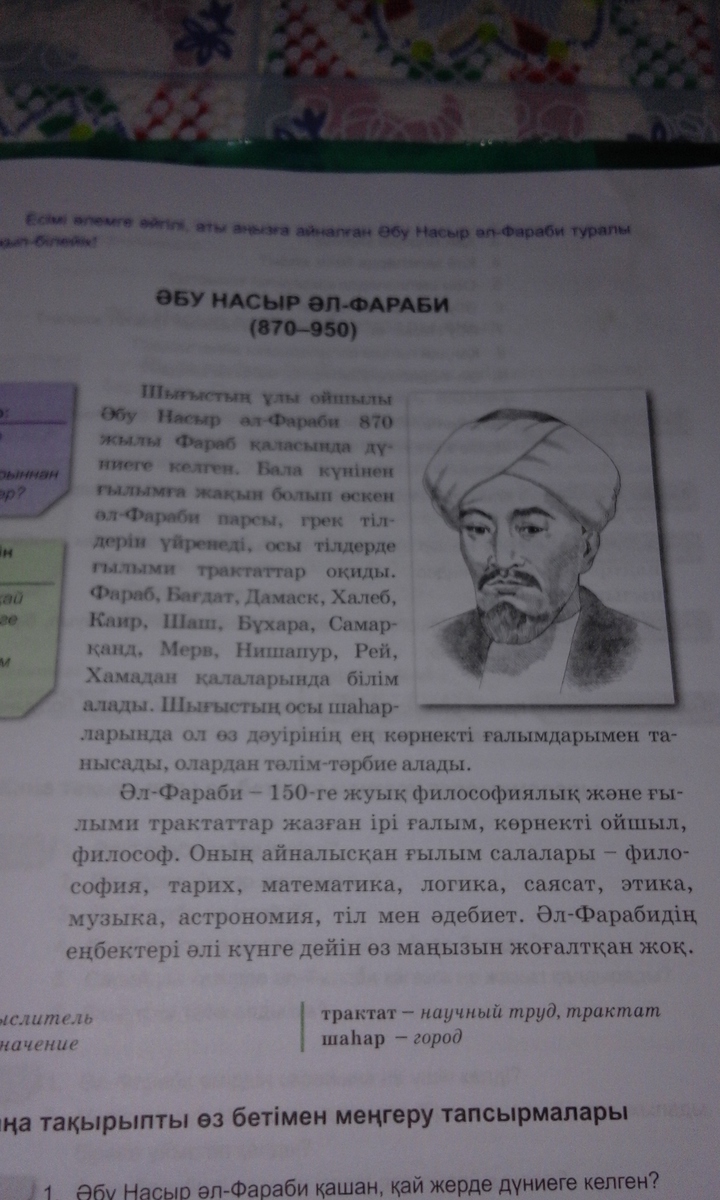 году в городе Фараб.С детства был близок к науке,учил персидский,греческие