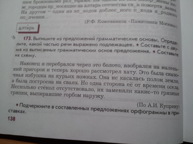 Выпишите из предложений грамматические основы. Определите, какой частью речи выражено подлежащее. Составьте с двумя из выписанных грамматических основ.