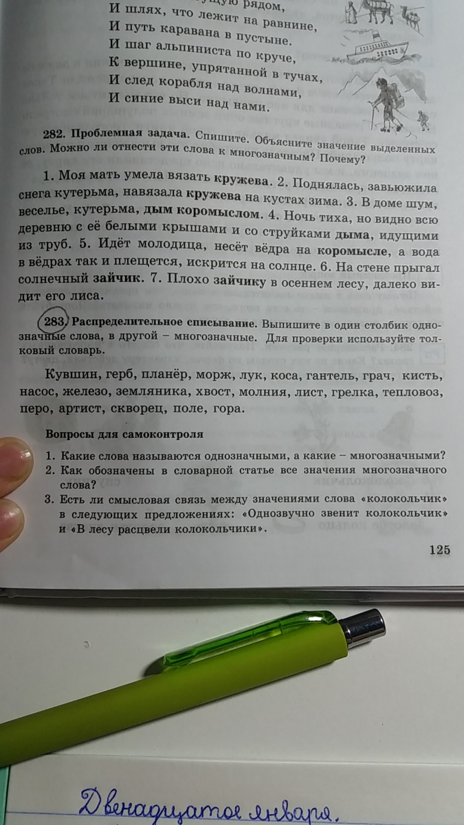 Многозначные - артист кисть коса лук хвост молния гора лист