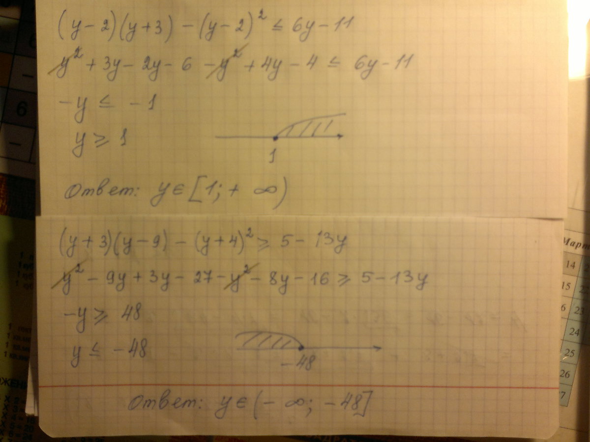 (у - 2)(у + 3) - (у - 2)² ≤ 6у - 11