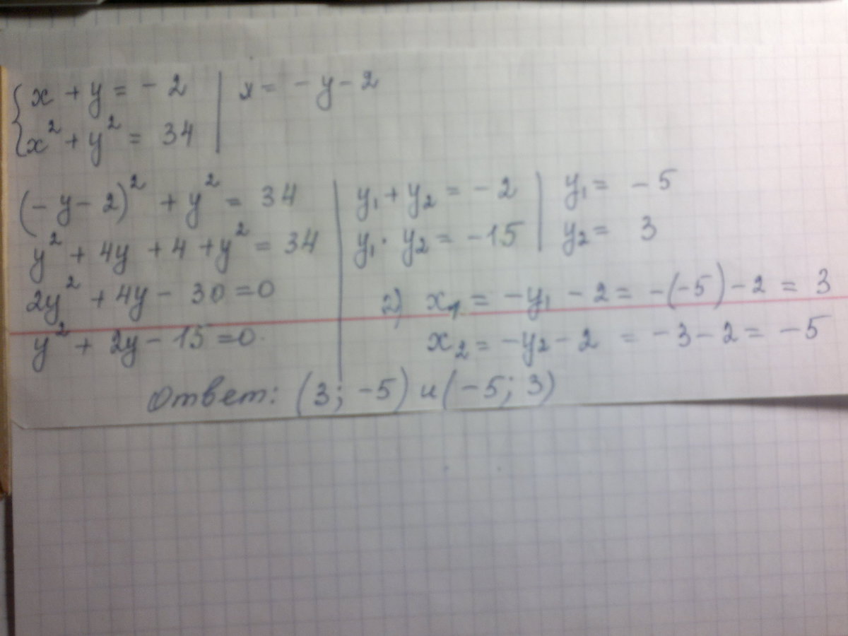 x = 3, y = -5 или х = -5, у = 3