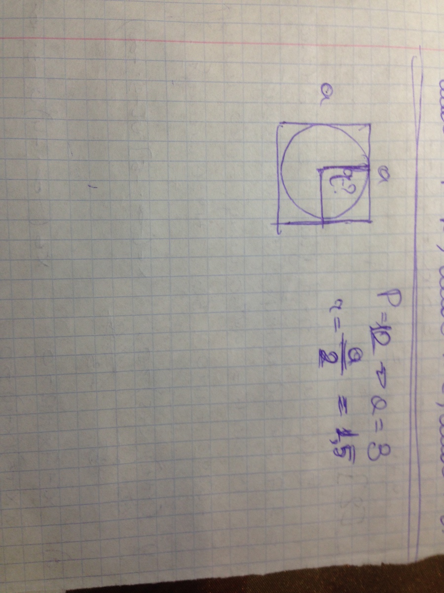 1)12:4= по 3 см длина и ширина квадрата, значит диаметр окружности 3 см; 2)3:2=1,5 см радиус окружности