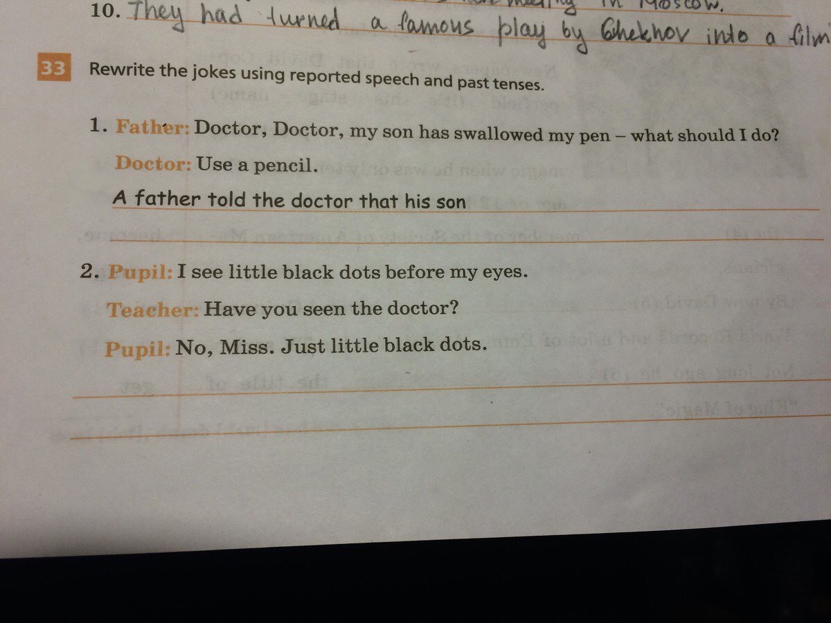 The teacher asked the pupil did she have seen the doctor?