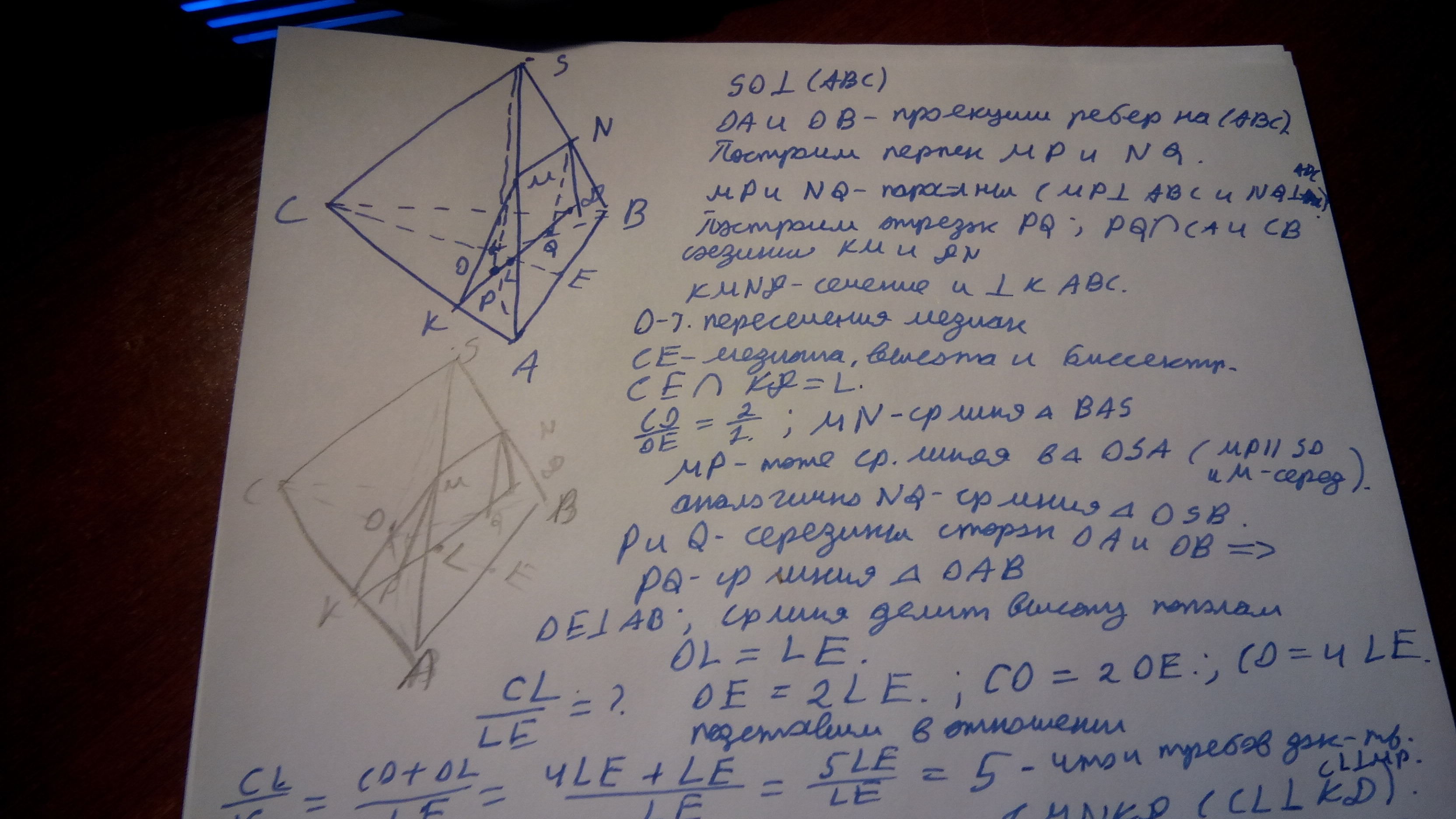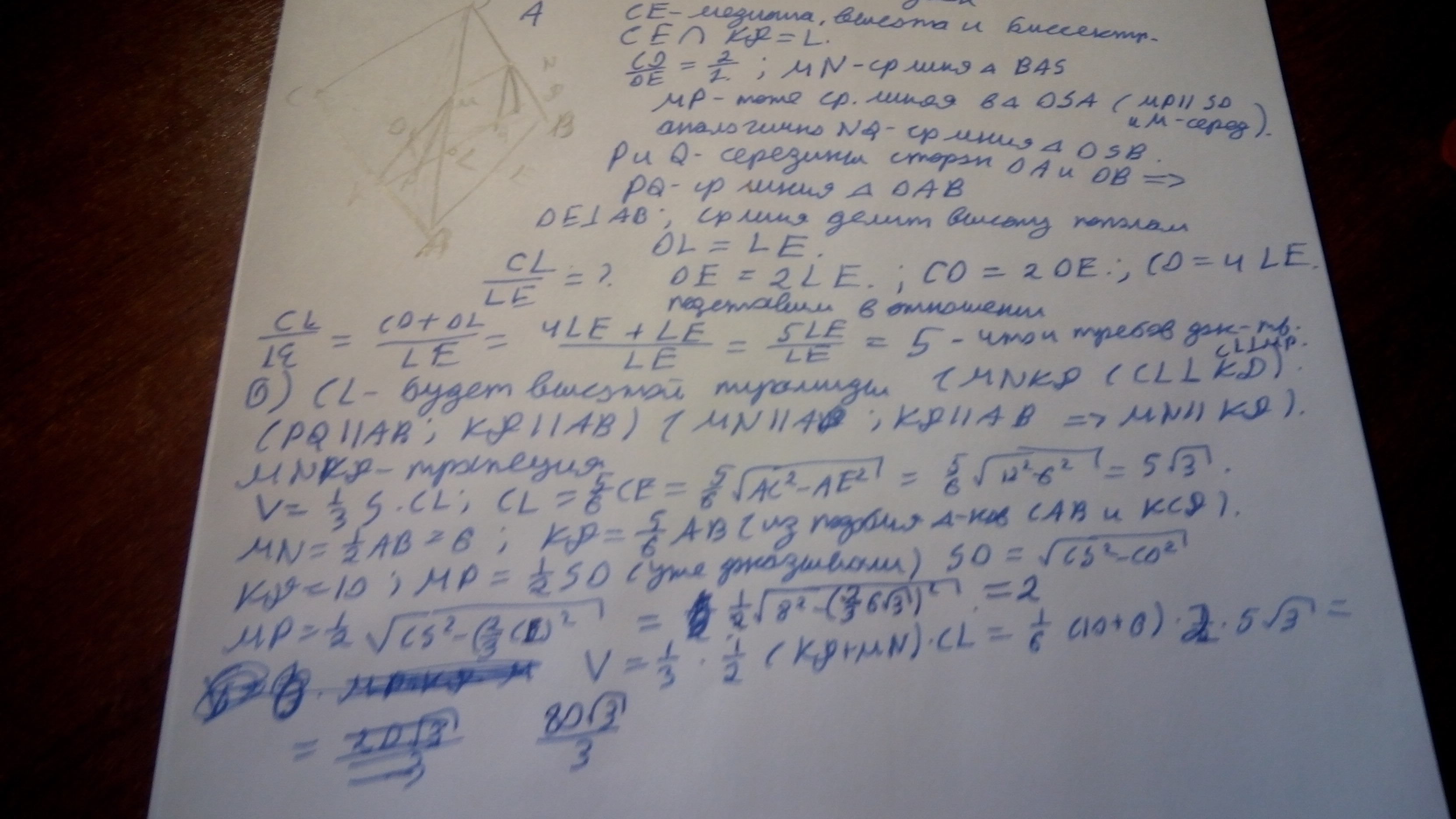 а) докажите, что плоскость альфа делит медиану CE основания в отношении 5:1, считая от точки C.