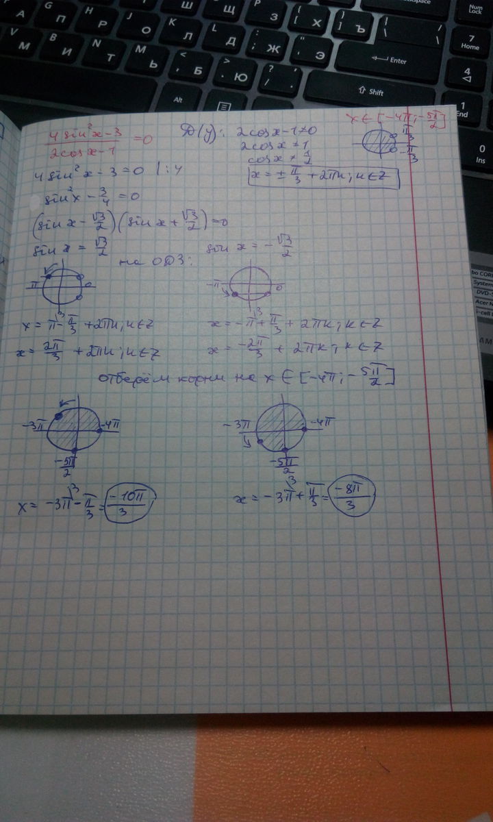 б) Найдите все корни этого уравнения, принадлежащие отрезку От -4π до -5π/2