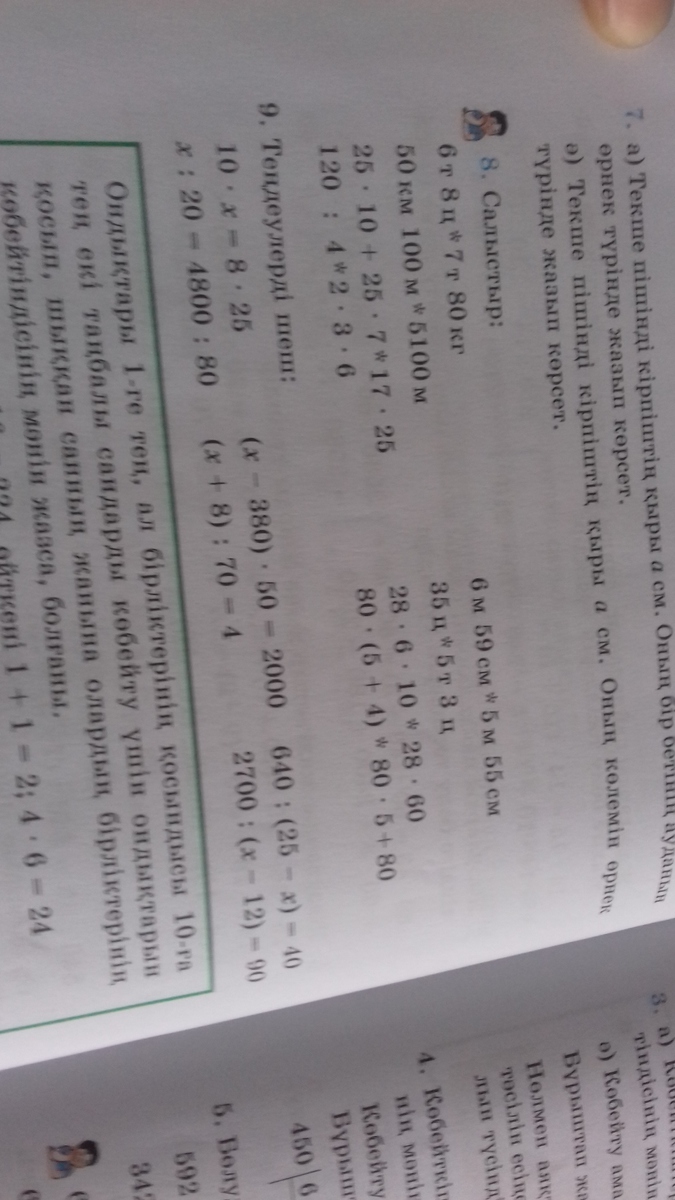 5)25*10+25*7=250+175= 425 6) 120:4=30 7)28*6*10=1680
