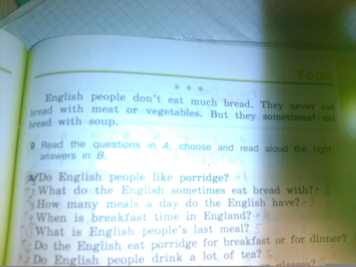 Англичане не едят много хлеба. Они никогда не едят хлеб с мясом или овощами. Но они иногда едят хлеб с супом.