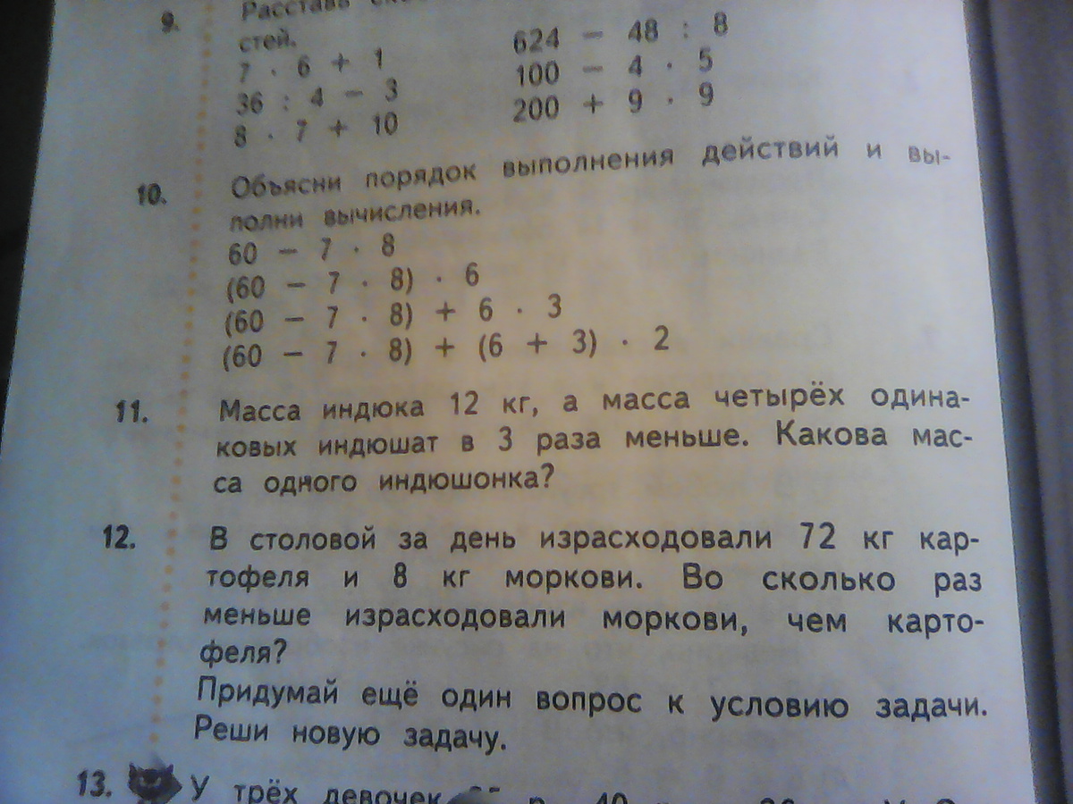 Масса 4 индюшат в 3 р. меньше массы индюка