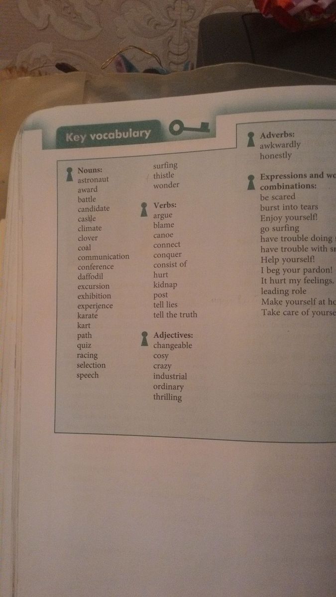Глаголы: спорить, обвинять, плыть на каноэ, соединять, завоевать, состоит из, причинить боль, похитить, вывешивать, не знаю, говорить правду