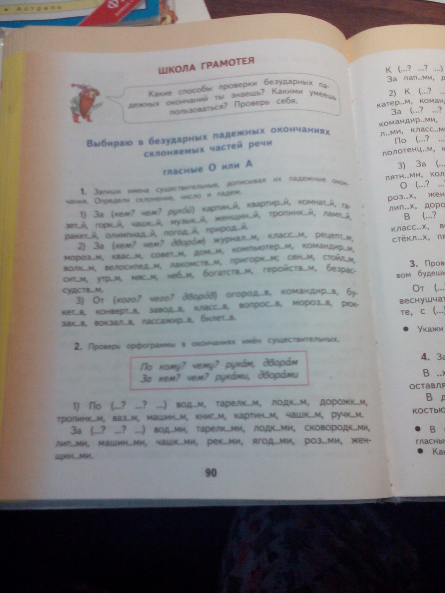 2)За журналом,классом,рецептом,морозом,квасом,советом,домом,компьютером,командиром,волком,велосипедом,лакомством,пригорком,сеном,стойлом,ситом,утром,мясом,небом,богатством,геройством,безрассудством.