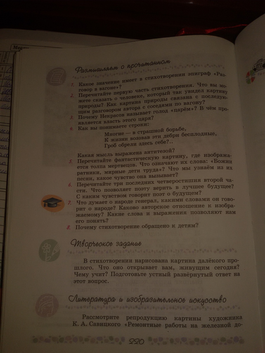 5) В этих строках Некрасов противопоставил скудную жизнь и вечную борьбу людей "бесплодным дебрям". автор пытается показать, насколько адским был этот труд, какое напряжение и душевные муки испытывали строители, воздвигая перед собой поле железной дороги, чтобы вдохнуть искры жизни в Богом забытые земли.