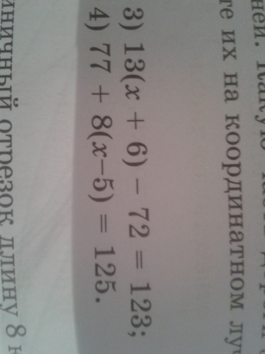 3)13(х+6)-72=123 4)77+8(х-5)=125