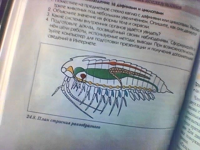 Строение телаТело ракообразных разделяется на головогрудь и брюшкоПокровы телаГоловогрудь покрыта хитиновым щитом — карапаксом. Кутикула выполняет функцию наружного скелетаКонечностиГоловогрудь: 1 пара антеннул, 1 пара антенн, 3 пары ротовых конечностей, 1—3 пары ногочелюстей, ходильные и плавательные ноги. Брюшко: плавательные, дыхательные, для спаривания и вынашивания яицПолость телаСмешанная полость телаПищеварительная системаКишечный канал состоит из передней и задней кишок. Печень. Желудок разделен на два отдела: жевательный и фильтрующийОрганы дыханияЖабры расположены на грудных конечностяхКровеносная системаНезамкнутаяВыделительнаясистемаОрганами выделения служат одна или две пары видоизмененных метанефридий — «зеленые железы»Нервная системаСостоит из парного надглоточного ганглия, подглоточного ганглия, окологлоточного кольца и брюшной нервной цепочки с парным ганглием в каждом сегментеОрганы чувствОрганы осязания хорошо развиты на поверхности антеннул и антенн. Органы равновесия встречаются редко. Пара сложных или фасеточных глаз, часто сидящих на специальных выростах головы — стебельках Половая система и развитиеБольшинство раков раздельнополы. Развитие с метаморфозом